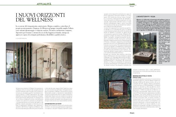 Nel percorso evolutivo di Megius l’ innovazione si configura come un vero principio progettuale che va oltre il semplice dato formale e che si basa sulla ricerca su materiali, superfici, tecnologie e processi produttivi. Il 2026 rappresenta una soglia simbolica e al tempo stesso operativa: il Cinquantesimo anniversario dell’ azienda. Un traguardo che non si limita a celebrare la storia, ma restituisce il senso di un percorso costruito in cinquant’ anni di sperimentazione nel mondo del bagno e del wellness. Questo passaggio si intreccia con una fase di espansione strategica che ridefinisce il perimetro dell’ offerta: l’ ingresso di Albatros, realtà storica specializzata nella produzione di vasche e mini piscine spa, segna infatti l’ apertura verso un nuovo scenario progettuale. L’ integrazione amplia il vocabolario di Megius introducendo sistemi idrotermali avanzati e, soprattutto, estendendo il concetto di benessere oltre lo spazio domestico tradizionale. Nasce così una visione in cui indoor e outdoor si fondono: terrazze, rooftop e giardini diventano ambienti attrezzati, dove l’ acqua e la tecnologia costruiscono nuovi spazi dedicati al relax.