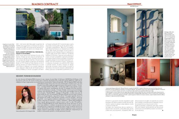 Le carte da parati di SpaghettiWall rivestono le aree comuni e la suite Mare 3.0 del nuovo MODE Hotel di Rimini. Al di là di questa scelta non solo estetica poiché aiuta a rispettare gli obiettivi Zero Carbon Foootprint dell’ hotel, sembra che le wallpaper in bagno rappresentino un trend di mercato inarrestabile. Federica Borgobello, CEO di SpaghettiWall, individua nell’ ambiente bagno il luogo dove la ricerca del dettaglio è al primo posto e la carta da parati è una scelta sempre più apprezzata grazie al suo potere evocativo.“ Un successo- sottolinea Federica Borgobello- testimoniato dalle recenti superfici ceramiche ispirate alla natura, estremamente decorate. Il vantaggio del nostro prodotto, a parità di performance tecniche, è l’ assenza di fughe e la posa su un rivestimento esistente, senza demolizioni.” In bagno, è l’ area lavabo che predilige il decoro della carta da parati.“ SpaghettiWall – aggiunge la Borgobello – produce una carta da parati in fibra di vetro con trattamento Waterproof Finish che non teme il contatto diretto con l’ acqua battente, come nel box doccia.” Per quanto riguarda i decori,“ I più richiesti sono quelli a tema floreale e botanico, non solo in bagno – precisa la Borgobello- ma in qualsiasi ambiente residenziale e contract. L’ elemento naturale produce sensazioni di benessere e comfort. Architetti e clienti finali prediligono trame vegetali appena accennate, oppure in macro scala.” Le oltre 700 grafiche a catalogo di SpaghettiWall sono fornite dimensionate in base allo spazio su cui devono essere applicate e realizzate con un processo just in time. A questo servizio di personalizzazione si aggiunge la possibilità di variare cromia su richiesta. Per la posa corretta del prodotto, l’ azienda si avvale di fornitori qualificati su tutto il territorio italiano, mentre la partnership con Mapei assicura qualità dei componenti per un