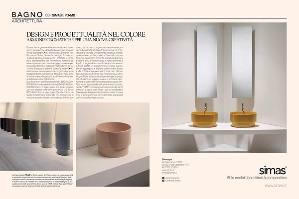 La linea di lavabi PO • MO by Simas, design Terri Pecora, esprime contemporaneità e versatilità progettuale a tutto campo. La ricercata estetica del design e delle molteplici nuance cromatiche consentono di soddisfare le richieste più esigenti e di dare un tocco di vitalità e forte personalizzazione all’ ambiente bagno. Di alta qualità, sostenibili, le ceramiche Simas sono al 100 % made in Italy, garantite dal prestigioso marchio Ceramics of Italy di Confindustria Ceramica.