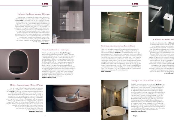 La parete che definisce lo spazio doccia della collezione H-Art può essere articolata in riquadri, scanditi da profili disponibili nelle diverse finiture del catalogo Novellini. Si va dalle superfici PVD lucide alle versioni spazzolate anodizzate e ogni modulo può essere personalizzato con vetri trasparenti o con bande satinate, disposte in senso verticale o orizzontale, per dare vita a composizioni simili a tessuti naturalisempre diversi. La combinazione di queste trame, evoca dinamiche organiche ispirate ai processi di crescita e trasformazione della materia naturale. Le superfici sono attraversate da un ritmo visivo fatto di venature e stratificazioni, capaci di attivare un dialogo sensoriale tra luce, corpo e spazio, fondendo percezione tattile e visiva. Con un’ altezza di 200 cm, una larghezza compresa tra 77 e 138,5 cm e uno spessore del vetro di 6 mm, H-Art ridefinisce il box doccia come un elemento architettonico dalla spiccata vocazione alla personalizzazione. www. novellini. it