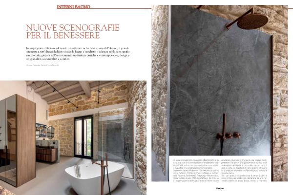 La vera protagonista di questo allestimento è la luce, che con un tocco teatrale, inondando lo spazio dall’ alto, enfatizza i contrasti chiaroscurali delle superfici e ne esalta la tridimensionalità. Siamo nel cuore di Palermo, non lontano da edifici come Palazzo d’ Orléans, Palazzo Reale e la Cappella Palatina, l’ architetto Piergiorgio Miserendino, titolare dello studio PM | Architetture, ha firmato la riqualificazione architettonica e d’ interni di una residenza divenuta il rifugio di una coppia di imprenditori tedeschi. L’ appartamento su due livelli è un ampio ambiente a tutta altezza con tetti lignei a vista. Le murature in tufo, ripulite, ritrovano le sfumature originali e le sfaccettature tipiche di questa pietra. Tra i vari spazi, il più particolare è senza dubbio la zona notte padronale che, dominata da una raffinata palette di grigio, beige, avorio e marrone,