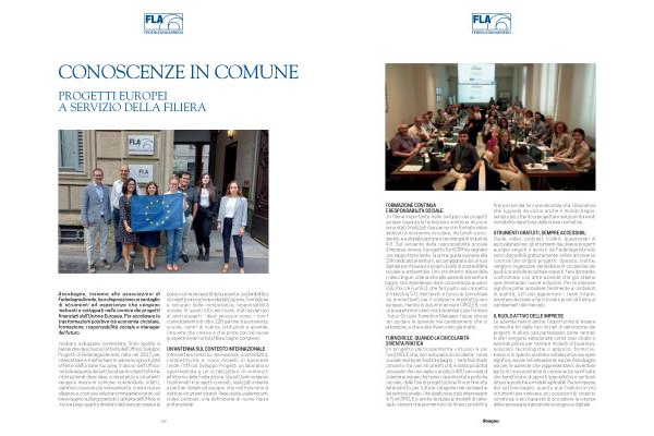 FORMAZIONE CONTINUA E RESPONSABILITÀ SOCIALE Un filone importante nello sviluppo dei progetti europei riguarda la formazione continua: da poco sono stati finalizzati due percorsi in formato video dedicati a economia circolare, materiali e ecodesign, e a digitalizzazione e tecnologie di Industria 4.0. Sul versante della responsabilità sociale d’ impresa, invece, il progetto FurnCSR ha segnato una tappa importante: la prima guida europea alla CSR dedicata al settore, accompagnata da un tool digitale per misurare il proprio livello di sostenibilità sociale e ambientale. Uno strumento disponibile in dieci lingue, utile anche alle aziende del settore bagno che desiderano dare concretezza ai valori ESG. Poi c’ è Furn5.0, che fa il punto sul concetto di Industria 5.0, mettendo a fuoco le tecnologie più promettenti per il comparto manifatturiero europeo, mentre in autunno arriverà CIRCLER, con un programma in dieci moduli pensato per formare i futuri Circular Transition Manager: figure chiave per guidare le aziende nei cambiamenti che ci attendono, e che a dire il vero sono già in atto.