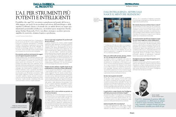 Dove e in che modo va applicata l’ A. I. perché risulti davvero efficace? In questo momento l’ A. I. mostra risultati tangibili soprattutto nelle operations: produzione, gestione materiali, logistica. È lì che si sta esprimendo con maggiore forza, grazie all’ integrazione con dati e sensori( IoT) e a strumenti come i digital twin. L’ A. I. aiuta la pianificazione, migliora il processo decisionale e – nei casi migliori – trasforma la struttura stessa del processo, portando valore reale. È sempre più centrale anche nella progettazione, prototipazione o nel dialogo tra design e produzione, ma a molte aziende manca la cultura necessaria per coglierne il potenziale. I vantaggi, però, sono evidenti: tempi ridotti, maggiore precisione, adattabilità ai comportamenti di mercato. L’ A. I. non è lo strumento. È la tecnologia che potenzia lo strumento.