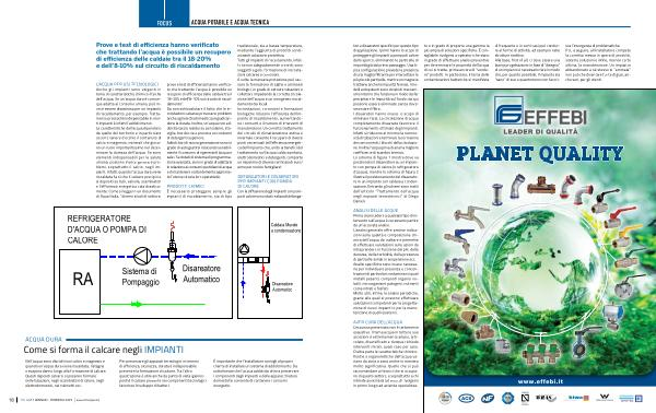 tori e disaeratori specifici per questo tipo di applicazione . I primi hanno lo scopo di proteggere gli impianti a pompa di calore dallo sporco , eliminando le particelle di impurità già dal primo passaggio . Una tipica configurazione prevede la presenza di una maglia filtrante per intercettare le più piccole particelle , mentre un magnete trattiene anche le impurità ferrose . I modelli autopulenti sono dotati di meccanismo interno che funziona in modo da far precipitare le impurità sul fondo ; da qui possono essere eliminate senza dover smontare il filtro . I disaeratori hanno invece lo scopo di eliminare l ’ aria . La circolazione di acqua completamente disaerata favorisce il funzionamento ottimale degli impianti . Infatti si riducono al minimo la rumorosità di tubazioni e terminali , la corrosione dei componenti , i blocchi della circolazione . Inoltre l ’ acqua priva di aria ha migliore coefficiente di scambio termico . Lo schema di figura 1 mostra dove va posizionato il disaeratore su un impianto con pompa di calore ( o refrigeratore d ’ acqua ), mentre lo schema di figura 2 illustra il posizionamento del disaeratore in un impianto con caldaia a condensazione . Entrambi gli schemi sono tratti dall ’ articolo “ Trattamento dell ’ acqua negli impianti termotecnici ” di Diego Danieli . |