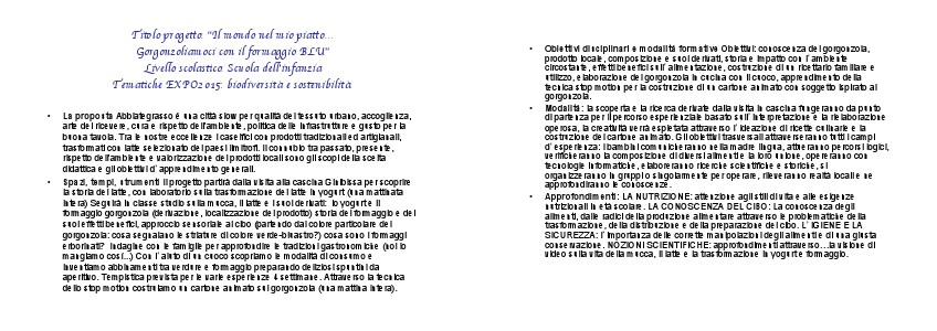 Obiettivi disciplinari e modalità formative Obiettivi: conoscenza del gorgonzola,