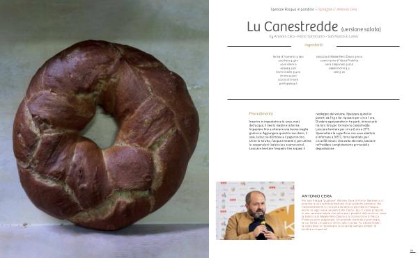 Per una Pasqua“ pugliese” Antonio Cera di Forno Sammarco ci propone la sua reinterpretazione di un prodotto semplice che tradizionalmente si consuma durante la giornata di Pasqua, anche se oggi viene venduto tutto l’ anno. Qui ci viene proposto in una versione salata che valorizza i prodotti del territorio come la salsiccia di Maiale Nero Dauno e lo scamorzone di Vacca Podolica semi-stagionato. Un prodotto morbido e profumato, la cui forma circolare e intrecciata ricorda:“ lu Canestredde”, la cesta dove si riponevano le uova( da sempre simboli di fertilità e rinascita).