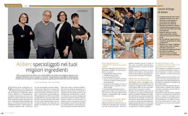 « Aliben distribuisce materie prime, semilavorati e ingredienti per i professionisti del food: panificatori, pasticceri, gelatieri, pizzaioli, baristi. Si tratta, in ogni caso, di prodotti contemporaneamente innovativi, versatili e di facile utilizzo. Abbiamo rapporti di esclusiva con alcuni grandi marchi italiani e internazionali e facciamo anche parte di un gruppo d’ acquisto a livello nazionale, Prima Italia ».