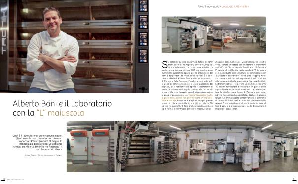 Si estende su una superficie totale di 1340 metri quadrati tra negozio, laboratori, magazzino e sala eventi. La produzione è divisa tra pasticceria e cucina, di circa 300 mq, mentre sono 400 metri quadrati lo spazio per la produzione del pane e dei prodotti da forno, dolci e salati. È il laboratorio ideale di Alberto Boni e si trova in provincia di Parma, a Sala Baganza. Focalizzandosi solo sulla zona di panificazione, se si entra passando dal negozio, ci si lasciano alle spalle il laboratorio di pasticceria fresca e l’ angolo cucina; alla nostra sinistra c’ è la zona lavaggio, quindi si prosegue verso la zona impastamento: « A Parma lavoriamo molto la pasta dura, quindi non può mancare un’ impastatrice a forcella, ho anche due spirali, una più grande e una piccola, e due tuffanti, una più piccola, da 80 kg che mi permette di fare anche impasti con 3 o 4 kg di farina, o il rinfresco del lievito madre, e una da