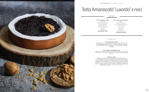 Finitura e cottura Stendere uno strato di pasta frolla alla nocciola dello spessore di 4 mm, foderare il bordo con altrettanta pasta frolla. Farcire il fondo con Amarascata ® Luxardo ® con l’ aiuto di un sac à poche. Versare il composto con il mascarpone e le noci fino al bordo. Cuocere a 185 ° C per 50 minuti circa. Una volta cotto, lasciar raffreddare, spolverare il bordo con dello zucchero a velo e riempire la superficie con 200 g di Amarascata ® Luxardo ®.( ph. courtesy of Luxardo ®)