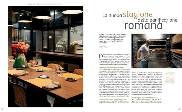 Il passo successivo è la nascita di Farro Zero, nel quartiere Africano, dove Franco ottiene, in breve tempo, il ricono- scimento del Gambero Rosso come“ miglior artigiano del territorio”. Segue poi Pane e Tempesta, un microfornolaboratorio di ricerca che segna un punto di svolta nella scena romana: qui Franco introduce l’ uso – per allora pionieristico- del ciclo del freddo per la gestione delle fermentazioni e, accanto alla pizza tonda, propone un’ evoluta proposta di panificazione. L’ arrivo della pandemia spinge questo maestro dell’ arte bianca a guardare oltreconfine: una consulenza internazionale lo porta a gestire produzioni tra Praga e Londra. Al rientro in Italia, capitalizza il percorso fatto e dà il via a un nuovo capitolo imprenditoriale: Garage Forno, un locale, a meno di una chilometro dalla basilica di San Pietro, a metà strada tra una bakery in stile europeo e un ricercato wine bar.