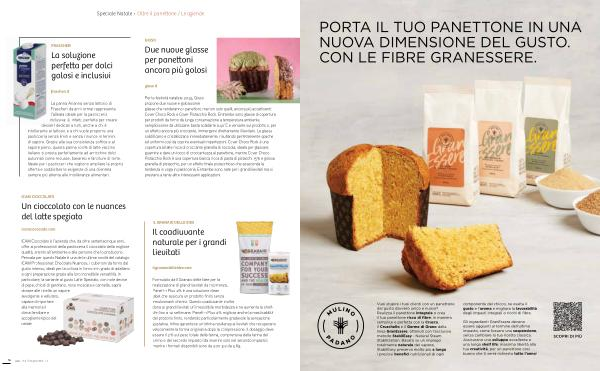 Formulato da Il Granaio delle Idee per la realizzazione di grandi lievitati da ricorrenza , Panett-1 Plus 2 % è una soluzione clean label che assicura un prodotto finito senza emulsionanti chimici . Questo coadiuvante inoltre dona ai grandi lievitati un ’ irresistibile morbidezza e ne aumenta la shelflife fino a 12 settimane . Panett-1 Plus 2 % migliora anche la masticabilità del prodotto finito , rendendo particolarmente gradevole la sensazione gustativa . Infine garantisce un ’ ottima resilienza ai lievitati che recuperano velocemente la forma originaria dopo la compressione . Il dosaggio deve essere il 2 % sul peso totale della farina , comprensiva della farina del primo e del secondo impasto ( da inserire solo nel secondo impasto ), mentre i formati disponibili sono da 200 g e da 5 Kg .