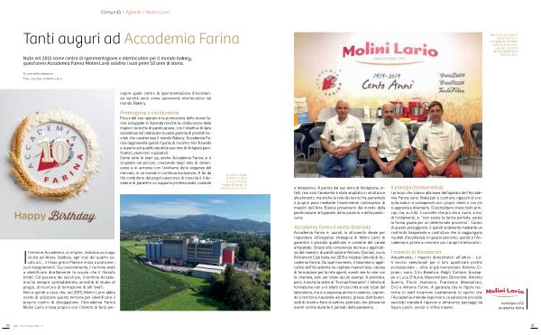 A cura della redazione Foto: courtesy of Molini Lario cepire quale centro di sperimentazione d’ eccellenza nonché porsi come autorevole interlocutore nel mondo Bakery.
