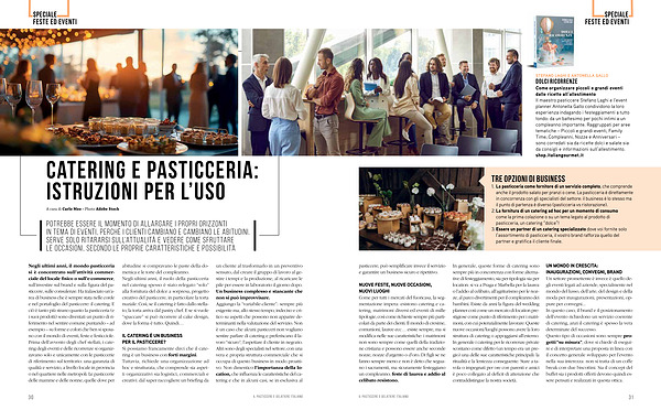 IL CATERING È UN BUSINESS PER IL PASTICCERE? Sì possiamo francamente dirci che il catering è un business con forti margini. Tuttavia, richiede una organizzazione ad hoc e strutturata, che comprende sia aspetti organizzativi sia logistici, commerciali e creativi: dal saper raccogliere un briefing da un cliente al trasformarlo in un preventivo sensato, dal creare il gruppo di lavoro al gestire i tempi e la produzione, al ricaricare le pile per essere in laboratorio il giorno dopo. Un business complesso e stancante che non si può improvvisare. Aggiungo la“ variabile-cliente”: sempre più esigente ma, allo stesso tempo, indeciso e critico su aspetti che possono non apparire determinanti nella valutazione del servizio. Non è un caso che alcuni pasticceri non vogliano sentire parlare di catering e preferiscano il lavoro“ sicuro”, l’ aspettare il cliente in negozio. Altri sono degli specialisti nel settore, con una vera e propria struttura commerciale che si occupa di questo business in modo proattivo. Non dimentico l’ importanza della location, che influenza le caratteristiche del catering e che in alcuni casi, se in esclusiva al