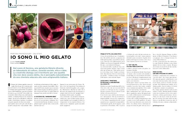 ASCOLTARE IL TERRITORIO ED EDUCARE IL CONSUMATORE ALLA QUALITÀ Martina non ama il marketing dell’ ovvio: « Non devo dire che uso nocciola IGP. È scontato: se entri qui sai che c’ è qualità. Mi piace pensare di aver educato il mio cliente a riconoscerla da sé ». Il suo lavoro nasce dall’ ascolto del mondo e dal territorio. « Per me il territorio è imprescindibile: non accetto compromessi. Uso frutta e ingredienti freschi e locali quando posso, seguendo la stagionalità e valorizzando quello che la Liguria, e più in generale il Nord Italia, offre. La pesca o la frutta che arriva dal mio territorio entra nel gelato così com’ è, senza aromi industriali, senza scorciatoie. Il gelato deve parlare del luogo in cui nasce, deve avere senso rispetto al posto in cui siamo ».