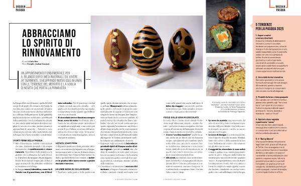 • I soggetti in cioccolato ( e non solo ): conigli e galline sono entrati prepotentemente in gioco . Vengono dalla tradizione nordeuropea , ma sono divertenti e appunto “ nuove ”. E , importantissimo , sono declinabili in dimensioni e forme . Dal cioccolatino a forma di coniglio al coniglio gigante , ma anche lievitato , chiudendo un cerchio iconografico che contraddistingue tutta la Pasqua .