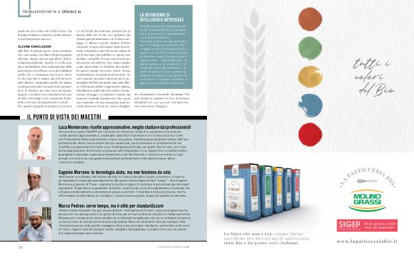 è a un livello più avanzato , proprio per la natura delle sue ricette : tra i gelatieri che l ’ hanno già sperimentata e ne vedono vantaggi c ’ è Matteo Casone , mentre Stefano Guizzetti , sempre affascinato dalle innovazioni , sottolinea come l ’ AI , in un campo in cui il riscontro del pubblico è spesso immediato , potrebbe trovare una buona applicazione nel delivery “ per capire meglio come intercettare le richieste dei clienti ”. In queste pagine troverete anche alcune testimonianze di grandi professionisti . Ne sono emerse curiosità e interesse per le potenzialità dell ’ AI , ma anche una sana difesa dell ’ irrinunciabile componente umana : l ’ intelligenza artificiale può aiutare a perfezionare dosaggi e a realizzare varianti , ma non può sostituire il pasticcere , che con la sua creatività e la sua esperienza reale inventa qualcosa di nuovo , anche sbaglian-