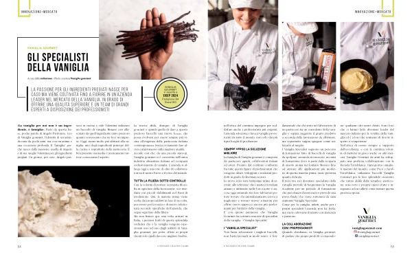 La nuova sfida , dunque , di Vaniglia gourmet è quindi quella di dare a questo prezioso baccello una nuova forma , che possa evolversi per essere sempre più vicina all ’ esigenza della pasticceria italiana contemporanea . Senza ovviamente fare alcun compromesso sulla migliore qualità . Accade così che , da una piccola start-up , Vaniglia gourmet si è convertita nell ’ unica industria alimentare italiana ad occuparsi esclusivamente di vaniglia . L ’ azienda si allarga oggi a una rete di oltre 60 collaboratori tra il nostro Paese e il resto del mondo .
