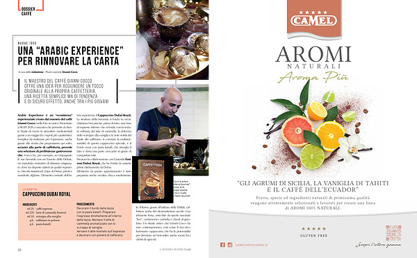 Arabic Experience è un“ ecosistema” esperienziale creato dal maestro del caffè Gianni Cocco( nella foto accanto). Presentato a SIGEP 2026, è una idea che permette al cliente finale di vivere le atmosfere mediorientali grazie a un viaggio fra i sapori più caratteristici. Semplice da realizzare per l’ operatore, anche grazie alla ricetta che proponiamo qui sotto, accanto alla parte di caffetteria, prevede una selezione di prelibatezze gastronomiche. Cocco ha, per esempio, accompagnato le sue bevande con un Vassoio delle Delizie, un manufatto emiratino di altissimo artigianato, dove ha disposto datteri di qualità superiore, biscotti maamoul, chips di Dubai, pinoli e mandorle afghane. Elemento centrale dell’ intera esperienza, il Cappuccino Dubai Royal. La struttura della bevanda si fonda su un’ architettura ben precisa: prima di tutto, una base di espresso intenso che si fonde con la texture vellutata del latte di cammella, la dolcezza dello sciroppo alla vaniglia e le note nobili del finale allo zafferano. A coronare la multisensorialità di questo cappuccino speciale, è il bordo tazza con pasta kataifi, che risveglia il tatto e dona una parte croccante in grado di conquistare tutti. Preziosa la collaborazione con l’ azienda Emirosì Dubai Royal, che ha fornito le materie prime direttamente da Dubai. All’ interno di questo appuntamento è stato preparata anche un’ altra chicca mediorientale: il Kawa, grazie all’ utilizzo della Dallah, caffettiera araba del diciassettesimo secolo. Una infusione lenta, arricchite da spezie macinate“ live”: cardamomo, cannella e chiodi di garofano. Un rituale antico che Gianni Cocco ha reso contemporaneo, così come il suo rivoluzionario cappuccino, che ha le potenzialità per diventare un best-seller, anche social, fra i clienti di ogni età.