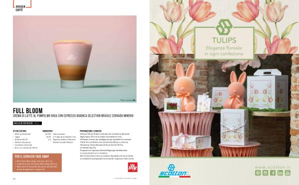 PREPARAZIONE E SERVIZIO Versare 120 ml di latte scremato nel contenitore del mixer. Aggiungere 20 ml di sciroppo di pompelmo rosa. Utilizzare il mixer per amalgamare gli ingredienti e montare il latte fino a ottenere una consistenza densa e cremosa. Versare la crema ottenuta nel bicchiere illy 70 fino a metà del logo illy. Preparare un espresso Brasile Regenagri direttamente in un piccolo bricco in ceramica. Servire bicchiere e bricco insieme, lasciando che sia il cliente a completare la preparazione versando l’ espresso nella crema.
