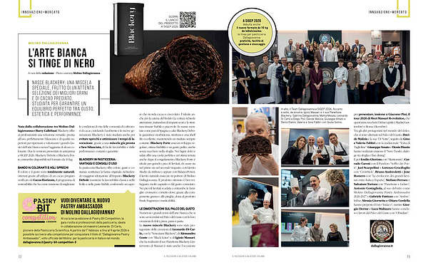 In alto, il Team Dallagiovanna a SIGEP 2026. Accanto e sotto, da sinistra: Iginio Massari e il suo Panettone Blackery; Sabrina Dallagiovanna, Mattia Masala, Leonardo Di Carlo e Diego Poli; Davide Malizia; Giuseppe Amato e Denis Dianin; Valeria e Gino Fabbri con Giulia Golino. per presentare, insieme a Giacomo Pini, il tour 2026 di Meet Massari R-evolution, che quest’ anno toccherà Dubai( aprile), Madrid( settembre) e Roma( dicembre). Tra gli altri protagonisti nel mondo del dolce, che si sono alternati sul Palco del Gusto, Davide Malizia e la sua“ Di Notte”, seguito da Gino e Valeria Fabbri con la tradizionale“ Torta di Taglioline”. Giuseppe Amato e Denis Dianin hanno realizzato insieme il“ Nero Tuorlo: dialogo tra sfoglia e fine dining”. E poi Emilio Glorioso con“ Maritomisù”, Corrado Carosi con il Pandoro“ Soffio dei Poeti”, Juri Scarpellini e Lorenzo Crocifoglio con“ CroisStick”, Bruno Andreoletti e Jose Romero con“ La evolución dei grandi lievitati entre Italia y España”, Stefano Ferrara e Salvatore Tortora con“ Panettone e Gelato”, Antonio Costagliola, al suo debutto come Molino Dallagiovanna Pastry Ambassador 2026-2027 e Gabriele Fattizzo con“ Ambra”. Infine Alessia Giornetta e Chiara Cordella hanno proposto il loro“ Indaco”, mentre Giorgio Derme e Luca Maltauro hanno concluso i lavori dal Palco del Gusto con“ Obsidian”.
