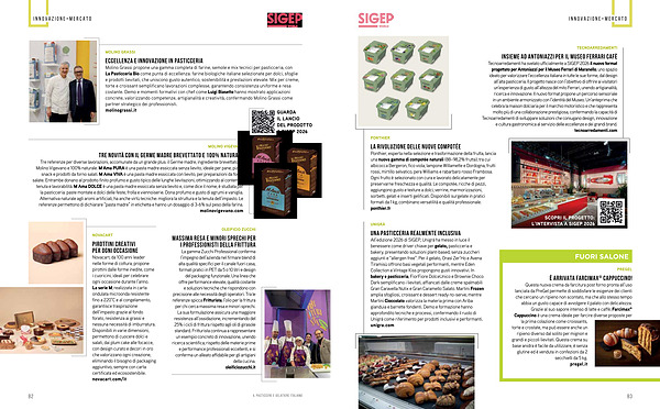 Molino Grassi propone una gamma completa di farine, semole e mix tecnici per pasticceria, con La Pasticceria Bio come punta di eccellenza: farine biologiche italiane selezionate per dolci, sfoglie e prodotti lievitati, che uniscono gusto autentico, sostenibilità e prestazioni elevate. Mix per creme, torte e croissant semplificano lavorazioni complesse, garantendo consistenza uniforme e resa costante. Demo e momenti formativi con chef come Luigi Biasetto hanno mostrato applicazioni concrete, valorizzando competenze, artigianalità e creatività, confermando Molino Grassi come partner strategico dei professionisti. molinograssi. it GUARDA IL LANCIO DEL PRODOTTO A SIGEP 2026