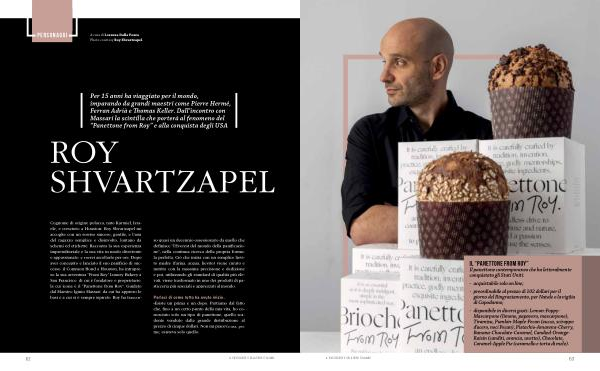Cognome di origine polacca , nato Karmiel , Israele , e cresciuto a Houston : Roy Shvartzapel mi accoglie con un sorriso sincero , gentile , e l ’ aria del ragazzo semplice e disinvolto , lontano da schemi ed etichette . Racconta la sua esperienza imprenditoriale e la sua vita in modo divertente e appassionato , e vorrei ascoltarlo per ore . Dopo aver concepito e lanciato il suo panificio di successo , il Common Bond a Houston , ha intrapreso la sua avventura “ From Roy ” Luxury Bakery a San Francisco , di cui è fondatore e proprietario , la cui icona è il “ Panettone from Roy ”. Guidato dal Maestro Iginio Massari , da cui ha appreso le basi e a cui si è sempre ispirato , Roy ha trascorso quasi un decennio ossessionato da quello che definisce “ l ’ Everest del mondo della panificazione ”, nella continua ricerca della propria formula perfetta . Ciò che inizia con un semplice lievito madre ( farina , acqua , lievito ) viene curato e nutrito con la massima precisione e dedizione e poi , utilizzando gli standard di qualità più elevati , viene trasformato in uno dei prodotti di pasticceria più speciali e apprezzati al mondo .
