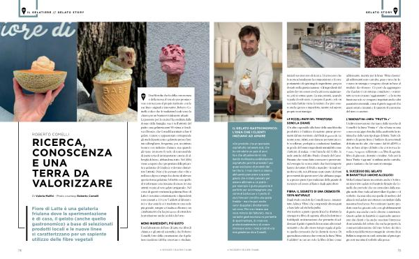 Una filosofia che fa della conoscenza e della ricerca il veicolo per promuovere con successo il proprio territorio : con le sue linee originali e innovative , Roberto Comelli ci dice che le tradizioni locali sono la chiave per un business totalmente attuale . La passione per la cucina l ’ ha ereditata dalle donne della famiglia , ma è nell ’ attività del padre , una gelateria anni ’ 90 vicina a Gradisca d ’ Isonzo , che Comelli ha iniziato a fare il gelato . Curioso e appassionato , intraprende gli studi di pasticceria e gelateria presso l ’ istituto alberghiero , frequenta , poi , un istituto tecnico con indirizzo chimico , ma quando gli viene proposto il ruolo di responsabile di pasticceria di un ’ importante catena di alberghi di lusso , abbandona tutto . Nel 2004 viene a sapere che i proprietari della più antica gelateria di Gradisca volevano dismettere l ’ attività . « Non ci ho pensato due volte e nell ’ arco di poco tempo ho deciso di rilevare questa storica gelateria : l ’ obiettivo era quello di trasformare una insegna di paese in una attività vocata al vero gelato artigianale ». Nel corso di questi vent ’ anni la gelateria Fiore di Latte è cresciuta costantemente , i dipendenti sono passati a 11 ( con 5 addetti al laboratorio ) e due anni fa si è trasferita in una sede più grande , sempre a Gradisca d ’ Isonzo ; un cambiamento che ha permesso di estendere la produzione anche ai dolci da forno .