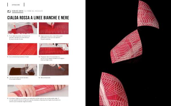4 . Preparare il burro di cacao bianco e , con un rullo in spugna , stenderne un leggero strato sul foglio rosso .