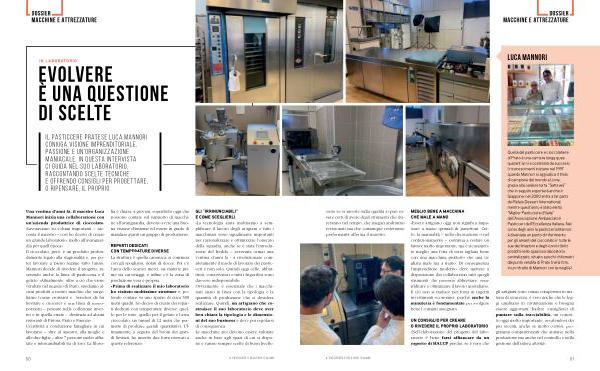 MEGLIO BENE A MACCHINA CHE MALE A MANO « Essere artigiano oggi non significa impastare a mano quintali di panettoni. Certo, la manualità – nella decorazione o nel confezionamento – continua a restare un fattore molto importante, ma è sicuramente meglio una fetta di torta tagliata bene con una macchina piuttosto che una tagliata male ma a mano. Di conseguenza l’ imprenditore moderno deve mettere a disposizione dei collaboratori tutti quegli strumenti che possono abbreviare, semplificare e ottimizzare il lavoro quotidiano. E ciò non si traduce per forza in ingenti investimenti economici, perché anche la minuteria è fondamentale per svolgere bene i compiti assegnati ».