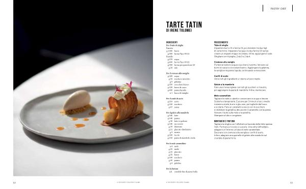 MONTAGGIO E FINITURA Tagliare la sfoglia con l’ affettatrice facendo delle fette spesse 1mm. Formare a ricciolo e cuocere. Una volta raffreddato, adagiarvi all’ interno un tubo di mele caramellate. Decorare con cremoso alla vaniglia e confit di aceto. Infine, adagiare una quenelle di gelato alle mandorle sul crumble di pasta frolla.