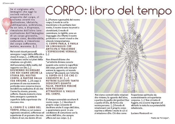Noi siamo costruiti dalle relazioni che viviamo, lo sguardo dell'altro, a partire da quello dei genitori fino a quello di Dio, dà forma alla nostra persona. [...] Il modo di relazionarsi con il proprio corpo esprime e riflette l modo in cui ci si relaziona a Dio. Ciò dice come l'esperienza spirituale sia essenzialmente un'esperienza corporea. [...] Non si tratta di fuggire, ma occorre imparare ad abitarlo in tutta la sua potenzialità relazionale.