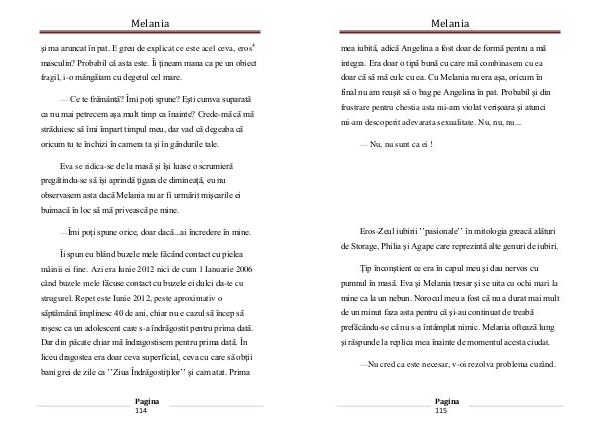 Eva se ridica-se de la masă şi îşi luase o scrumieră pregătindu-se să îşi aprindă ţigara de dimineaţă, eu nu observasem asta dacă Melania nu ar fi urmărit mişcarile ei buimacă în loc să mă privească pe mine.