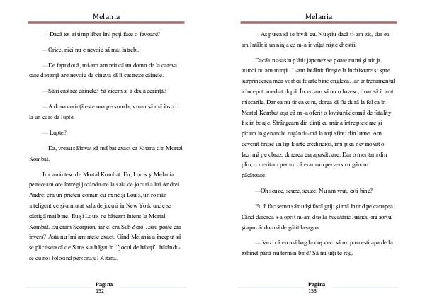Dacă un asasin plătit japonez se poate numi şi ninja atunci nu am minţit. L-am întâlnit fireşte la închisoare şi spre surprinderea mea vorbea foarte bine engleză. Iar antrenamentul a început imediat după. Încercam să nu o lovesc, doar să îi arat mişcarile. Dar ea nu ţinea cont, dorea să fie dură la fel ca în Mortal Kombat aşa că mi-a oferit o lovitură demnă de fatality fix in boaşe. Strângeam din dinţi cu mâna între picioare şi picam în genunchi rugându-mă la toţi sfinţi din lume. Am devenit brusc un tip foarte credincios, îmi pică nevinovat o lacrimă pe obraz, durerea era apasătoare. Dar o meritam din plin, o meritam pentru că eram un pervers cu gânduri păcătoase.