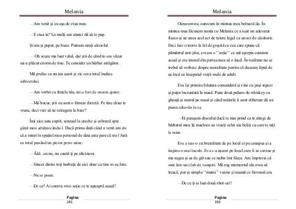 Oarecum nu, oarecum în mintea mea bolnavă da. În mintea mea făcusem nunta cu Melania ce a ieşit un adevarat fiasco şi ne unea acel act de tutore legal ca un act de căsătorie. Deci într-o teorie la fel de greşită ca cea care spune că pământul este plat, aveam o’’ soţie’’ ce mă aştepta cuminte acasă şi era imoral din partea mea să o înşel. În realitate nu ar trebui să vorbesc despre moralitate pentru că duceam lipsă de ea încă cu începutul vieţii mele de adult.