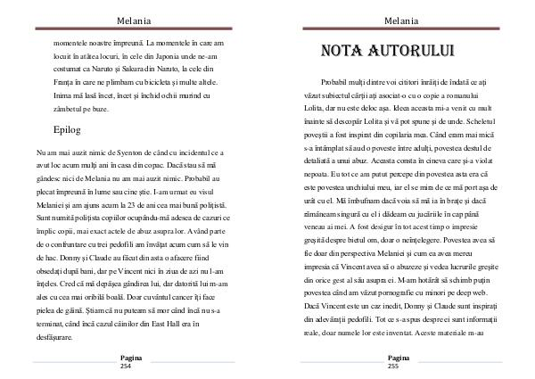 Nu am mai auzit nimic de Syenton de când cu incidentul ce a avut loc acum mulţi ani în casa din copac. Dacă stau să mă gândesc nici de Melania nu am mai auzit nimic. Probabil au plecat împreună în lume sau cine ştie. I-am urmat eu visul Melaniei şi am ajuns acum la 23 de ani cea mai bună poliţistă. Sunt numită poliţista copiilor ocupându-mă adesea de cazuri ce împlic copii, mai exact actele de abuz asupra lor. Având parte de o confruntare cu trei pedofili am învăţat acum cum să le vin de hac. Donny şi Claude au făcut din asta o afacere fiind obsedaţi după bani, dar pe Vincent nici în ziua de azi nu l-am înţeles. Cred că mă depăşea gândirea lui, dar datorită lui m-am ales cu cea mai oribilă boală. Doar cuvântul cancer îţi face pielea de găină. Ştiam că nu puteam să mor când încă nu s-a terminat, când încă cazul câinilor din East Hall era în desfăşurare.