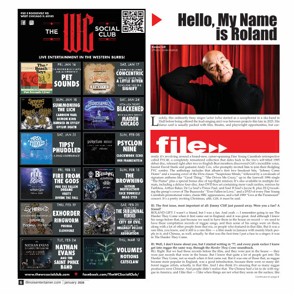 IE: The first issue, most important of all: Jimmy Cliff just passed away. Were you a fan? A friend? ROLAND GIFT: I wasn’ t a friend, but I was a fan. And yeah— I remember going to see The Harder They Come when it first came out in England, and it was great. And although I knew his songs before that, just because we used to have them in the house on record— we used to have these compilation records of reggae songs, and then some of his songs were on them, along with a lot of other people from that era, or people who featured in that film. But it was a rare film, you know, and it still is a rare film— a film made in Jamaica with mainly black people in it, and Chinese, as well, actually. So that was the first time I put a face to a singer; it was in The Harder They Come.