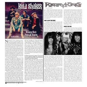 Bringing Back Peace & Dignity junkyard-dog mean . Consistent , sharp-hooked cuts like “ Gaslighting ,” “ Kalifornia Blues ,” “ Happy Birthday ,” “ Something Dangerous ,” “ Indian Record Player ,” and “ Idon ’ twannapaymytaxes ,” Kula Shaker feels totally rejuvenated , as vital as ever , with a thematic through line boomeranging straight back to K , a cultural anomaly that had more to do with exotic Indian raga scales and Vedic texts than typical Britpop bombast . Although Mills spun off in 2002 into a more straightforward rock combo called The Jeevas , he never lost sight of the Kula Shaker sound and identity and , in his current interview , is even wiser and more astute than he was for our first 1996 chat .