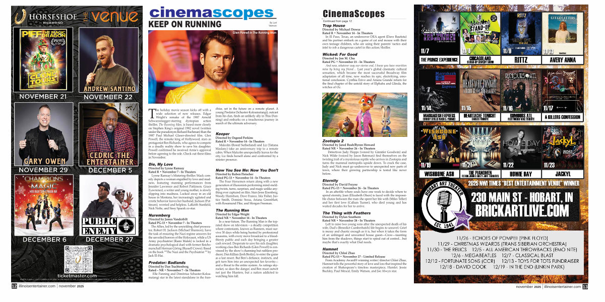 From Academy Award ® winning writer / director Chloé Zhao, Hamnet tells the powerful story of love and loss that inspired the creation of Shakespeare’ s timeless masterpiece, Hamlet. Jessie Buckley, Paul Mescal, Emily Watson, and Joe Alwyn star. november 2025 illinoisentertainer. com 13