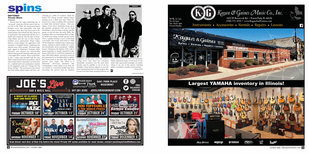 in a 2008 car accident, which left bassist Chi Cheng severely injured before passing away a short time later. What followed was a series of albums that continued to build their die-hard fanbase. This new album, Private Music, absolutely leaps out of the speakers, produced with care by Nick Raskulinecz, who has been working with the group on and off since the early 2000s. His technique offers an interesting blend of digital detail and analog warmth, giving Private Music a quality lacking in most current hard rock bands. The woozy tech-metal of“ Milk Of The Madonna” explodes into a dream-pop chorus, making it perfect fodder for a summer blockbuster movie soundtrack.“ Infinite Source” bludgeons the listener with a riff of guitar harmonics so deeply ingrained in this band’ s DNA that it could have appeared on their 1995 debut album, Adrenaline; however, the production is so crystalline that it couldn’ t have been made at any time other than the present. First single“ My Mind Is A Mountain” showcases drummer Abe Cunningham’ s canny ability to go from allout assault to a powerful double time-beat, providing the perfect bed for Stephen |
