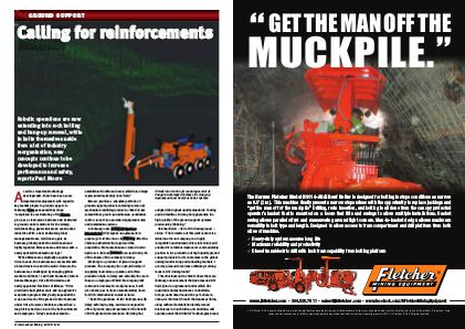 “get the man off of the muckpile.” Drilling, resin insertion, and bolting is all done from the canopy protected