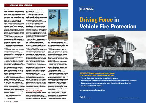 Following its debut, the first machine was shipped to operate at Kinross Gold Corporation’ s Bald Mountain gold mine in Nevada. With a focus on solving today’ s toughest mining challenges, Joy Global equipped the first of its next generation of P & H drills with features to help extend equipment life, reduce costs and improve safety, including: n Robust solid boxer style mast construction with a simple rack and pinion pulldown design to reduce maintenance effort while increasing drilling forces n Innovative automatic bit handling and pipe handling functions to improve safety and increase machine utilisation n Intelligent compressor control, which manages power consumption and associated bailing velocity, to lower operating costs Several other smart features are available for the drill to facilitate improved cycle times, including enhanced auto drill and electronic load sense control. The 77XD is compatible with Joy Global’ s new high-precision GPS tele-remote operation console and automation solution, which includes features such as geo fencing, auto navigation, auto level, auto drill, obstacle detection and mitigation, Hawkeye 360 ° camera system, and more.