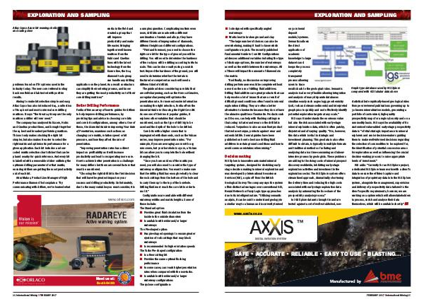 The company has analysed its Excore, Hobic and Craelius product lines, and brought together the 14 best and broadest performing matrices. This not only makes stocking the right bit simpler, but also makes it easier to select the right matrix and optimise its performance for a given application. Each bit includes a colourcoded matrix selection chart sticker that can be placed nearby for quick reference. And every bit is labelled with a removable sticker outlining the optimum drilling parameters for that matrix; ensuring drillers are getting the most productivity out of each bit.