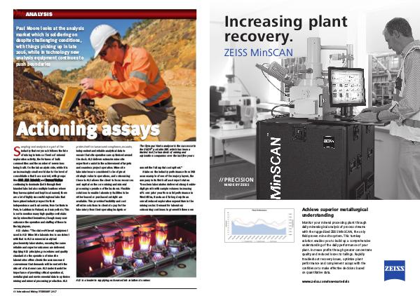 Monitor your mineral processing plant through daily mineralogical analysis of process streams with the ruggedized ZEISS MinSCAN, the only field-proven mine site system. This turnkey solution enables you to build up a comprehensive understanding of the daily performance of your plant. Increase profits through greater concentrate quality and reduced losses to tailings. Rapidly troubleshoot recovery issues, optimize plant performance and complement assays with the confidence to make effective decisions based on quantitative data.