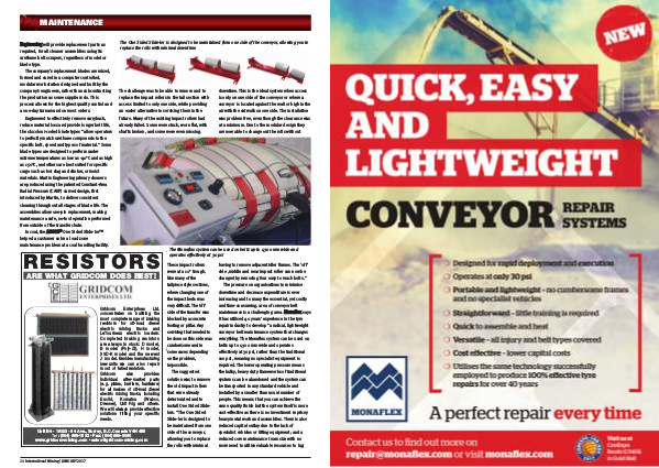 The pressure on organisations to minimise downtime and decrease expenditure is ever increasing and to many the essential, yet costly and time-consuming, area of conveyor belt maintenance is a challenging area. Monaflex says it has utilised 40 years’ experience in the tyre repair industry to develop“ a radical, lightweight conveyor belt maintenance system that changes everything. The Monaflex system can be used on belts up to 1,300 mm wide and operates effectively at 30 psi, rather than the traditional 100 psi, meaning no specialist equipment is required. The lower operating pressure means the bulky, heavy duty frameworks of traditional systems can be abandoned and the system can be transported in any standard vehicle and installed by a smaller than usual number of people. This means that you can achieve the same quality finish but the system itself is more cost-effective as there is no investment in pricey heavy metal work and assemblies. There is also reduced capital outlay due to the lack of specialist vehicles or lifting equipment; and a reduced core maintenance team size with no more need to utilise valuable resources to lug
