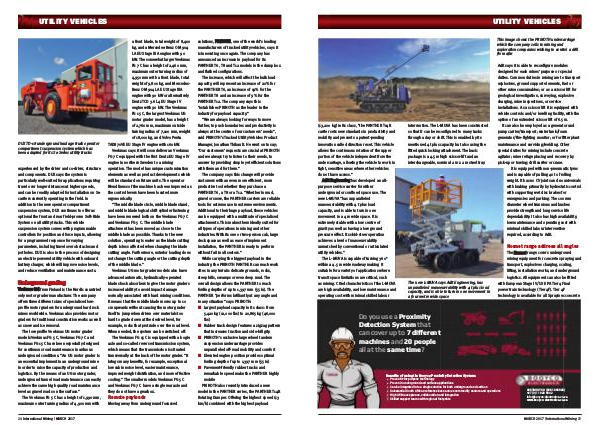 Adit Engineering has developed an allpurpose service carrier for either underground or confined space use. The new L-MUVA“ has unparalleled manoeuvrability with 4 t plus load capacity, and is able to turn in one movement in a 4 m wide space. It is extremely stable with a low centre of gravity as well as having a low ground pressure effect. Its skid-steer operation achieves a level of manoeuvrability unmatched by conventional or articulated utility vehicles.”