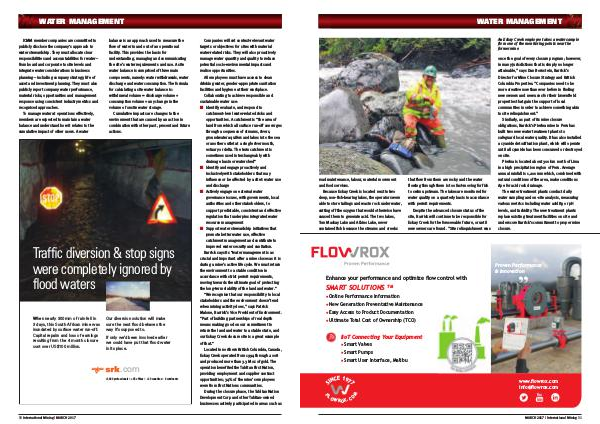 Collaborating to achieve responsible and sustainable water use: n Identify, evaluate, and respond to catchment-level water-related risks and opportunities. A catchment is“ the area of land from which all surface run-off converges through a sequence of streams, rivers, groundwater aquifers and lakes into the sea or another outlet at a single river mouth, estuary or delta. The term catchment is sometimes used interchangeably with drainage basin or watershed” n Identify and engage proactively and inclusively with stakeholders that may influence or be affected by a site’ s water use and discharge n Actively engage on external water governance issues, with governments, local authorities and other stakeholders, to support predictable, consistent and effective regulation that underpins integrated water resource management n Support water stewardship initiatives that promote better water use, effective catchment management and contribute to improved water security and sanitation. Barrick says its“ water management is as crucial and important after a mine closes as it is during a mine ' s active life cycle. We must return the environment to a stable condition in accordance with strict permit requirements, moving towards the ultimate goal of protecting the long-term viability of the land and water.”
