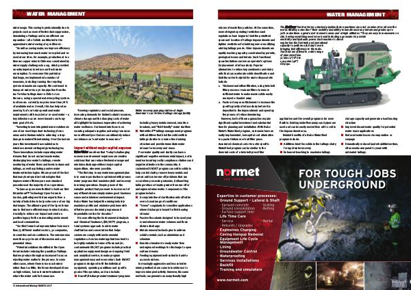 water usage. This saving is predominantly due to projects such as more effective dust suppression, dewatering of tailings and more efficient ore separation – all of which contributed to the approximate water saving of 25 million m 3.
