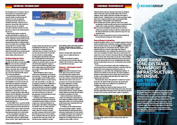 Transporting materials from remote locations has traditionally required significant infrastructure investments in road or rail links, vehicles, personnel and fuel. BEUMER offers an economical, efficient and environmental alternative – long-distance overland conveying. This gives you a dedicated, around-the-clock transport link at the fraction of the cost of infrastructure development. The reduced noise and air pollution minimises environmental impact and improves personnel safety. Add to that a high degree of design flexibility and customisation and you can see why overland conveying makes a big difference to operational efficiency and environmental protection. For more information, visit www. beumergroup. com