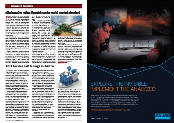 Salinen Austria AG contracted with Altmayer Anlagentechnik Gmbh & Co KG to construct a system that would be used to transfer tailings from the brine purification process which are used to pack the salt cavities that have been created. The method is, on the one hand, highly ecologically conscious in the sense of closed loop waste management, and, on the other hand, packing excavated caverns increases the stability of the underground works. The packing material is delivered by truck from the Ebensee salt works at a dry weight of approximately 70 % and unloaded into two hoppers. Using walking floors and screw conveyors, which are found on the floor of both hoppers, the packing material is conveyed into a mixing container( capacity approximately 84 m 3). Then, using an agitator, it is mixed with the brine