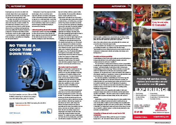 specified for AutoMine ® . “This API is another step in Sandvik’s journey to